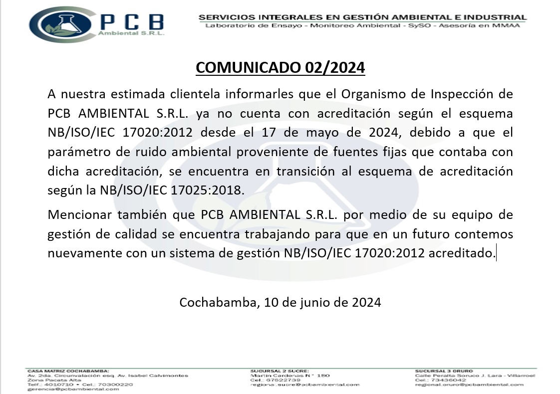 Somos un laboratorio Boliviano con más de 8 años de experiencia, brindamos servicios de monitoreo ambiental, monitoreo ocupacional, análisis fisicoquímico y microbiológico de muestras de agua, suelo y aire, elaboración de documentos ambientales y servicios de consultorías.